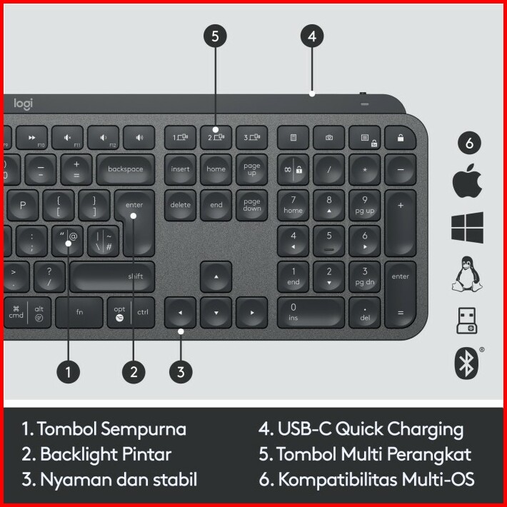 Logitech Mx Keys Keyboard Wireless Bluetooth Backlit For Power User