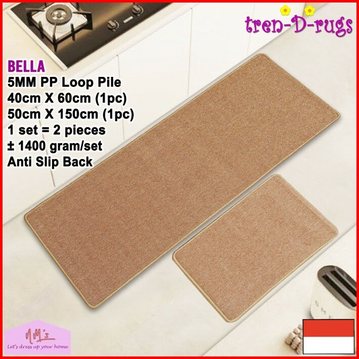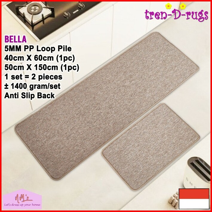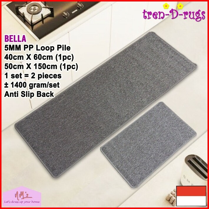 Tren-d-rugs Karpet Keset Polos Panjang Dapur Kitchen Mat Anti Slip 2pc