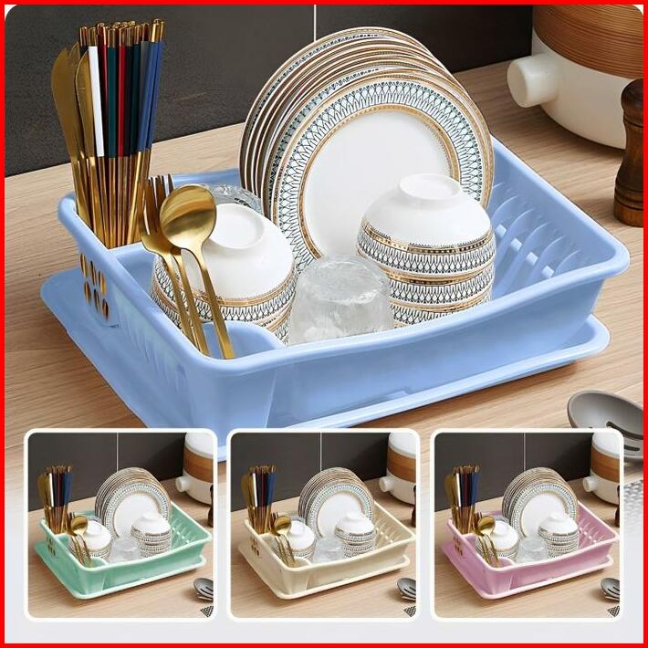 Rak Piring Multifungsi Rak Piring Plastik Serbaguna Dengan Nampan Rak Tirisan Piring Wastafel Pink