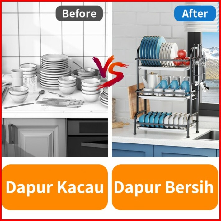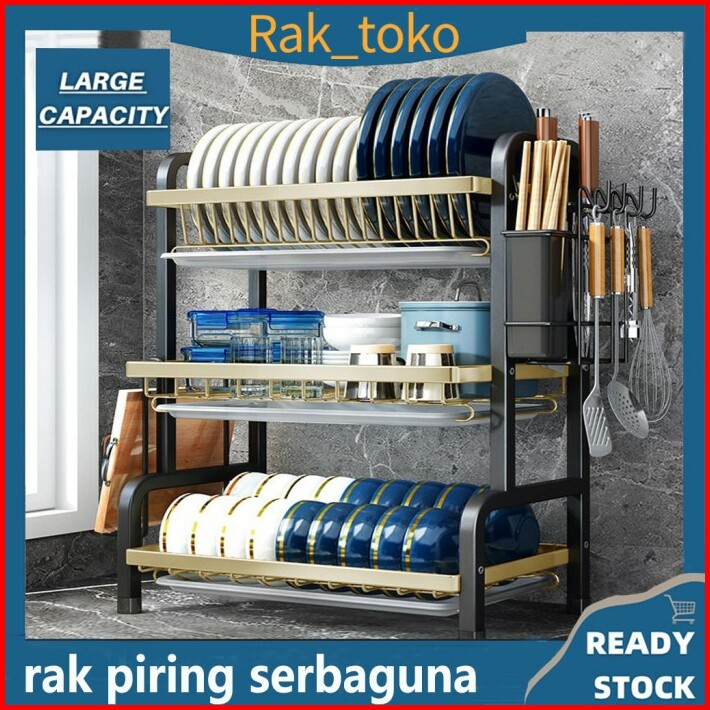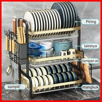 Piring Stainless Anti Karat Rak Dapur Meja Dish Drainerrak Penyimpanan