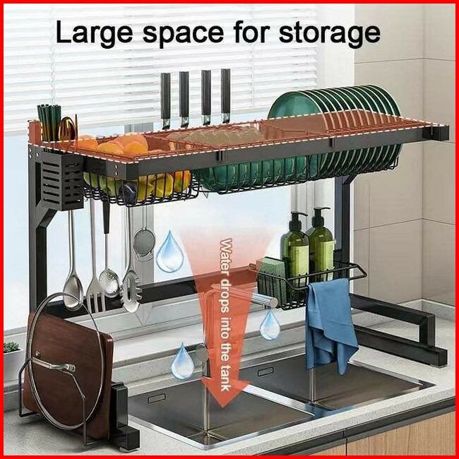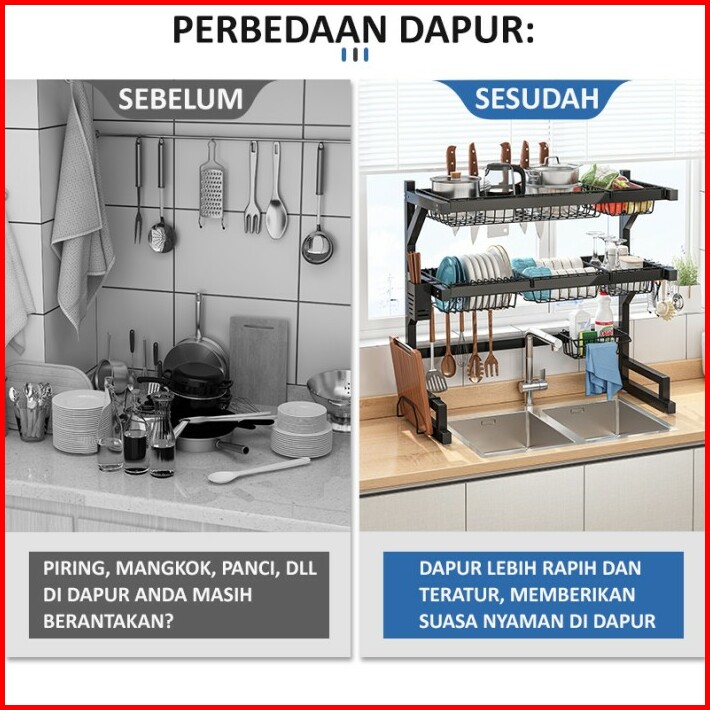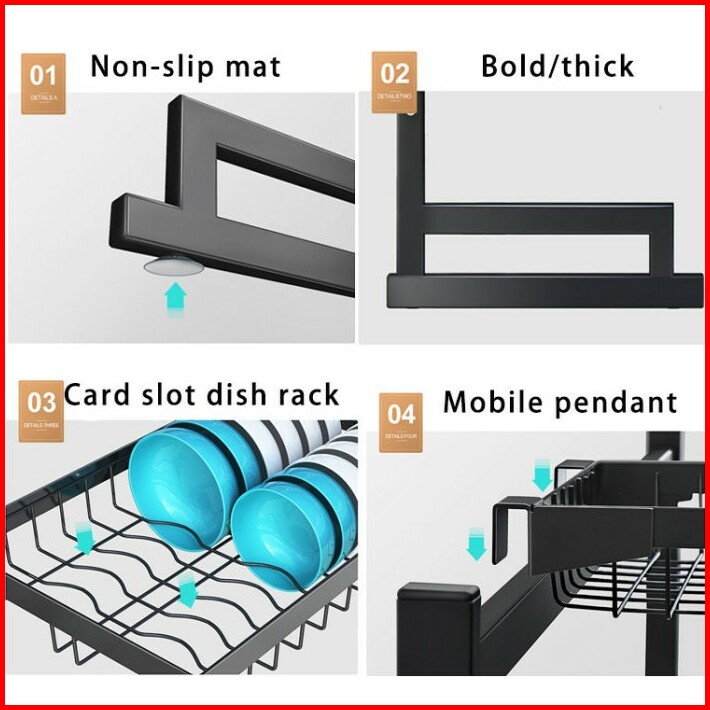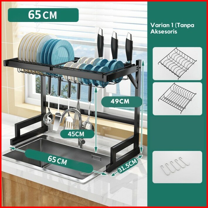 Es Rak Dapur Stainless Steel Hitam Rak Wastafel Rak Piring Dan Peralat
