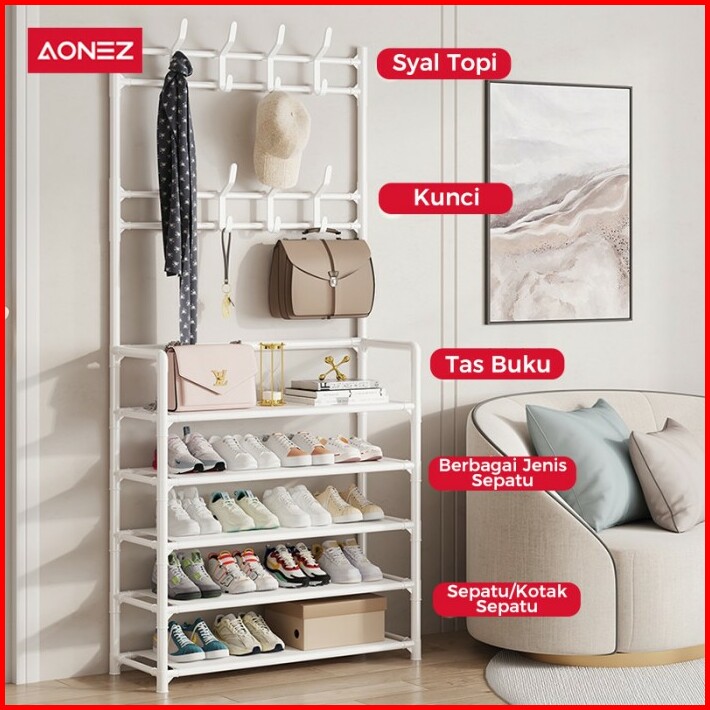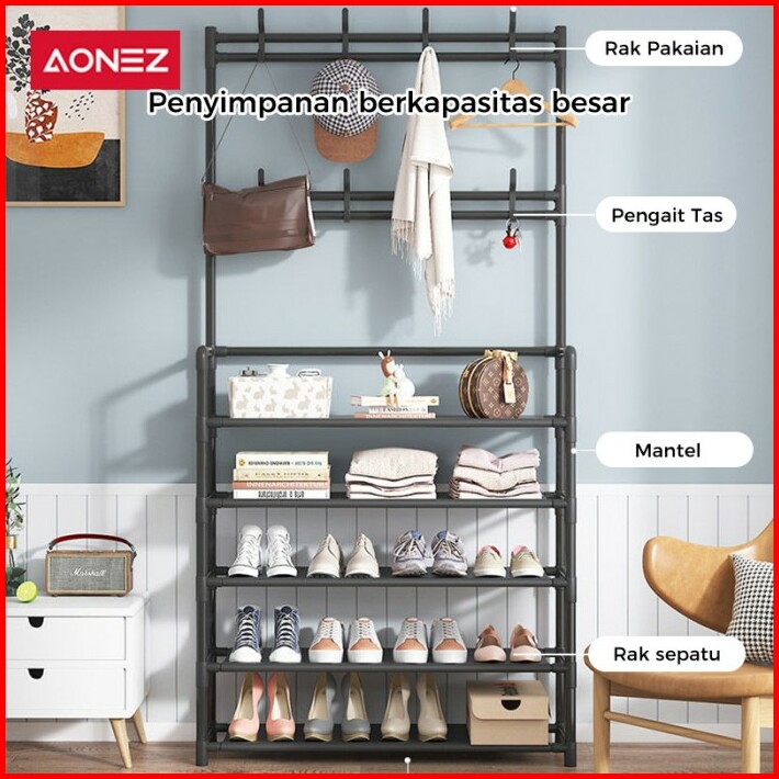 Aonez Rak Gantungan Baju Multifngsi Rak Sepatu Stand Hanger Topi Baju