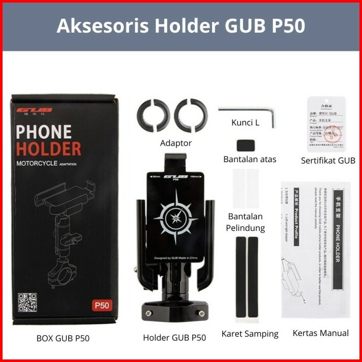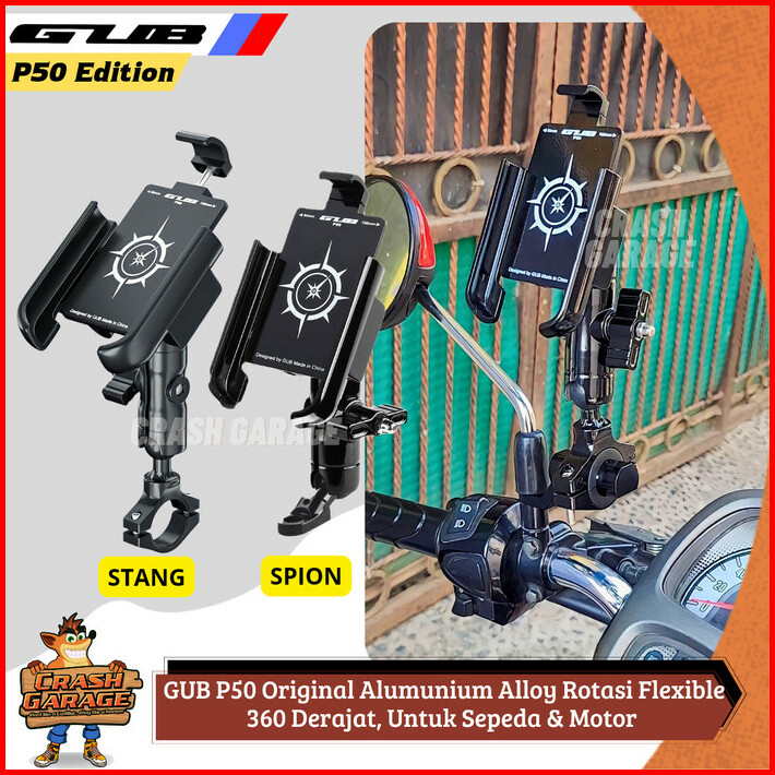 Gub P50 Holder Hp Motor Full Besi Stang Spion Dudukan Tempat Handphone