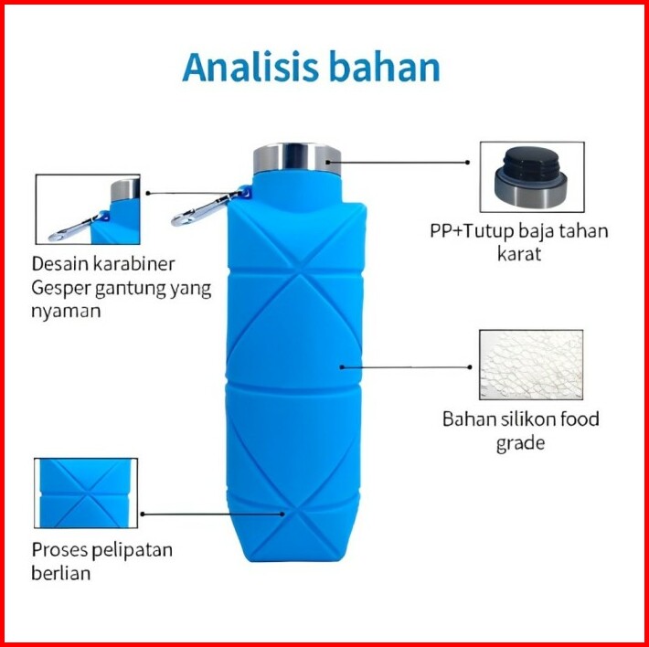 Botol Minum Lipat Silikon 700ml Botol Minum Sport Olahraga Camping Portable Foldable Bottle Silicone