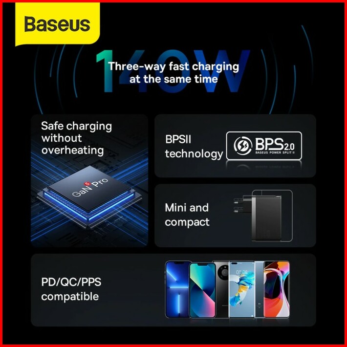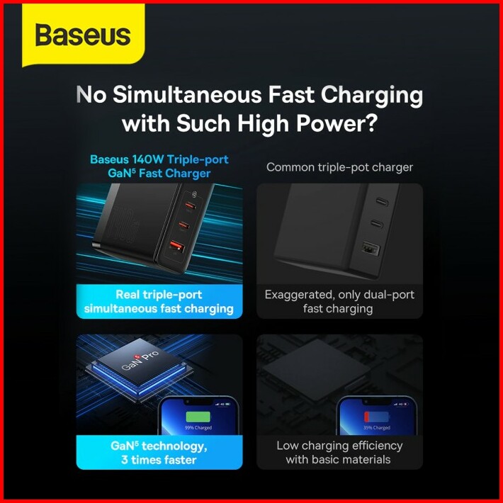 Baseus Gan5 Pro 140w Fast Charger Handphone Adaptor Laptop Usb Type C