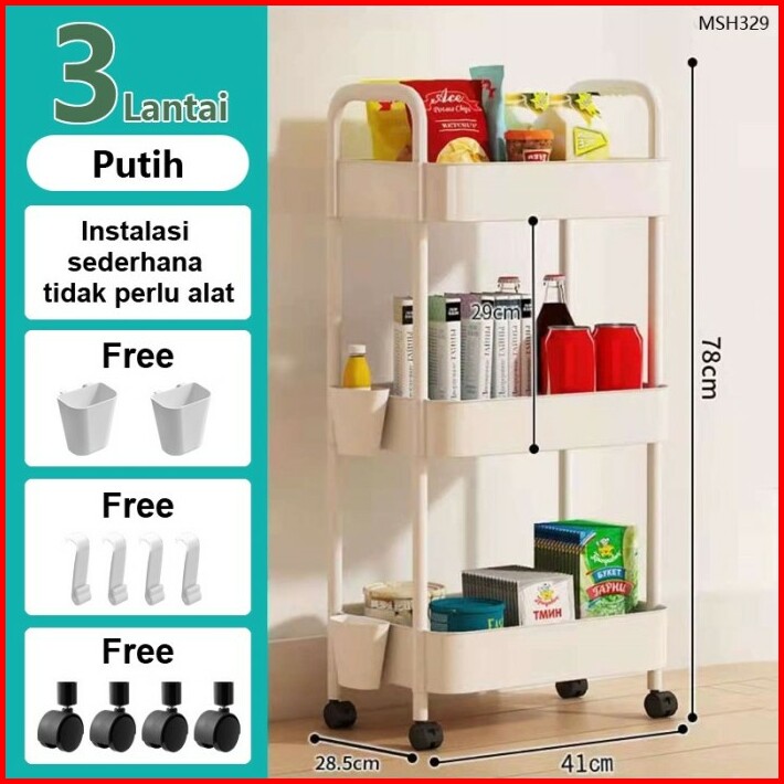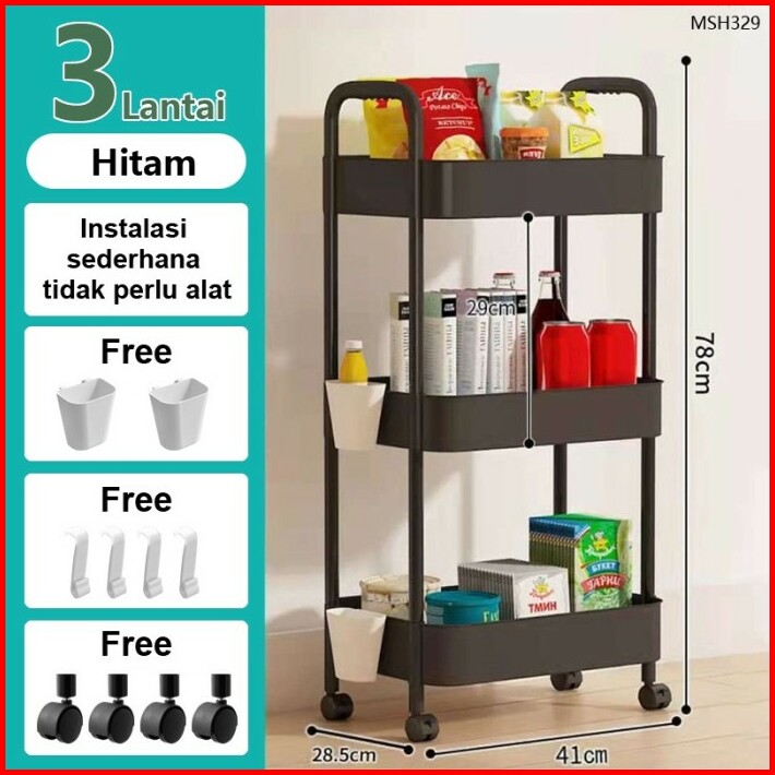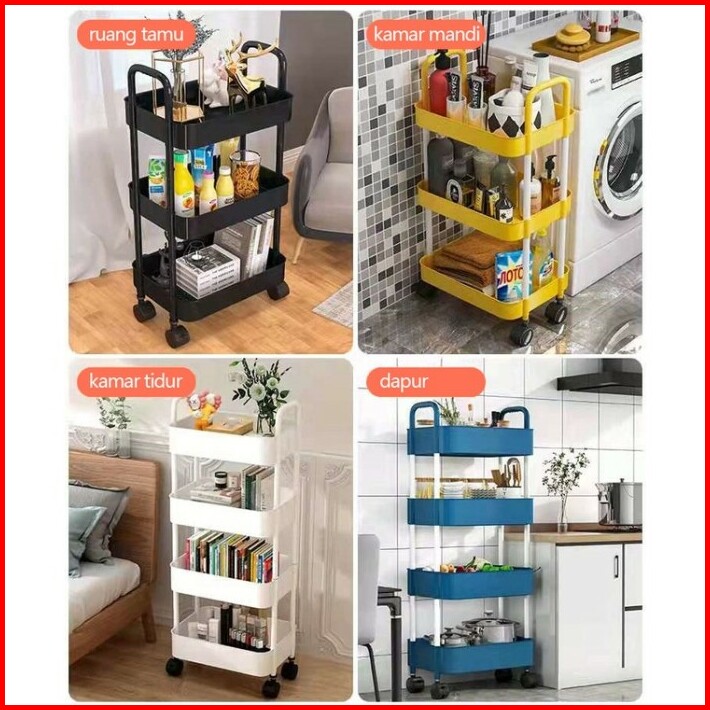 Rak Dorong Roda Seri Msh 3 4 Tingkat Susun Besi Troli Rak Serbaguna