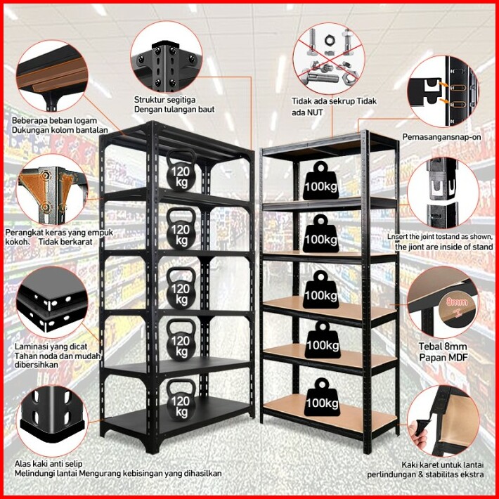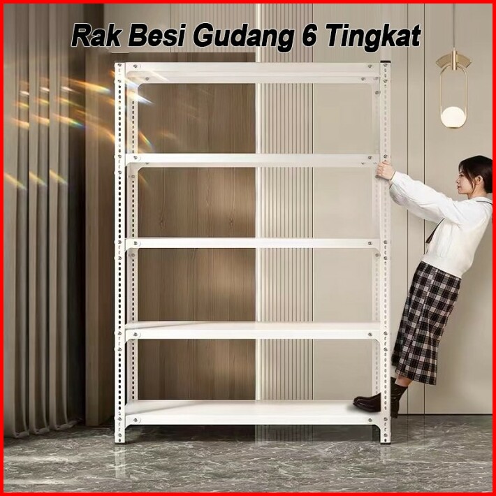 Rak Gudang Besi Serbaguna 5 6 Susun Rak Barang Bagus Murah -putih