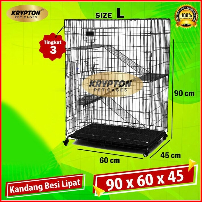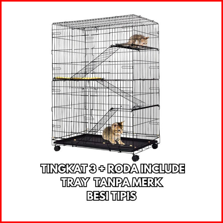 Kandang Kucing Tingkat 3 Size L 90x60x45 Roda