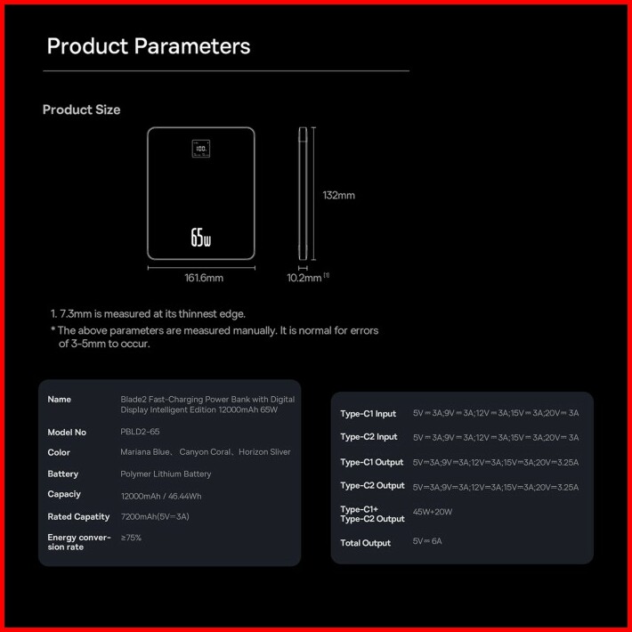 Baseus Blade2 65w Fast Charging Power Bank 12000mah Dual Type-c