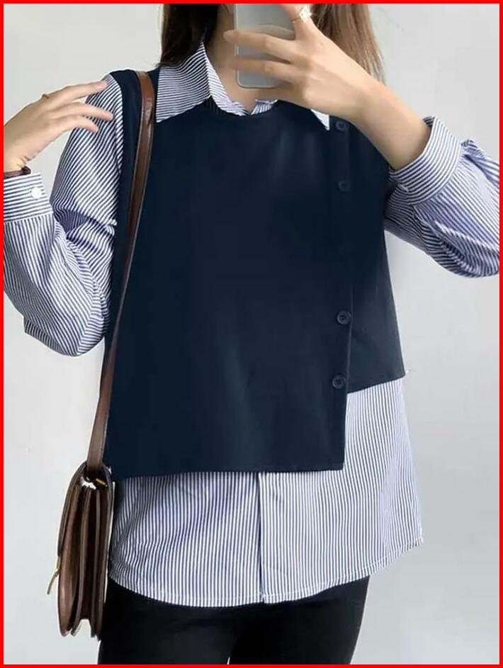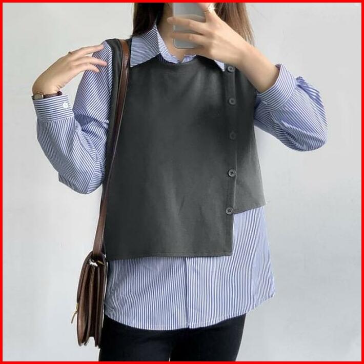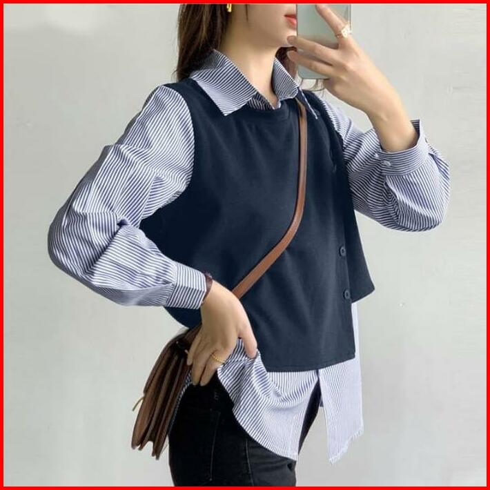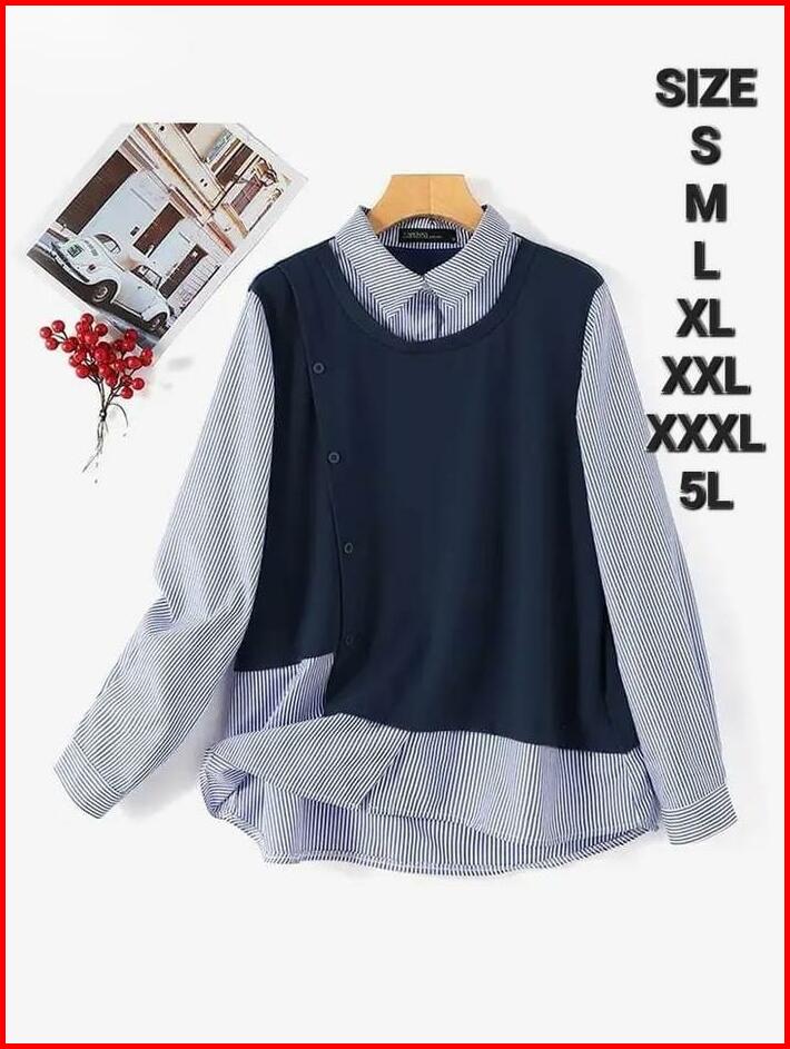 Paula Blouse Babyterry Mix Salur Atasan Panjang Wanita Korean Style Size S M L Xl Xxl Xxxl 5l