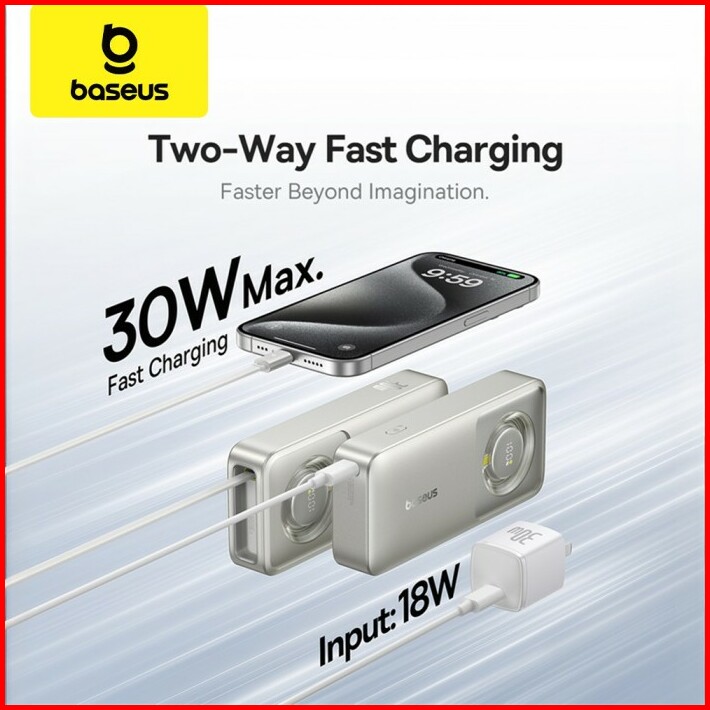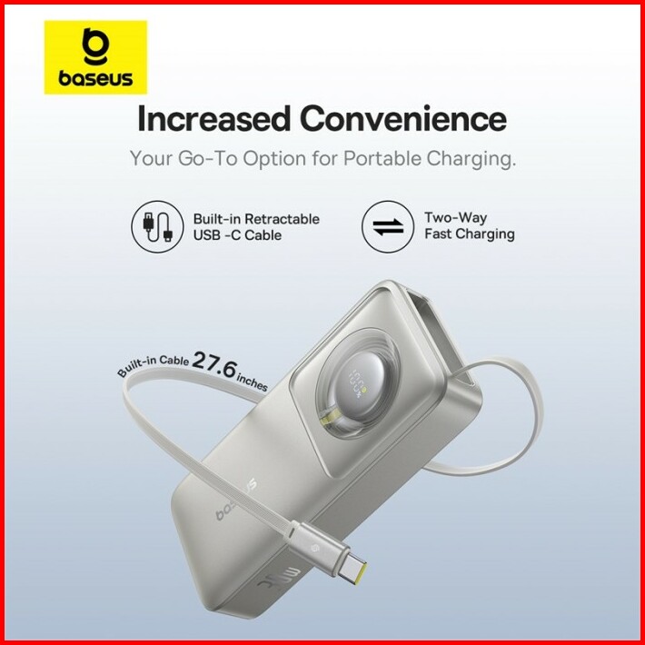 Baseus Free2pull Power Bank With Retractable Cable 10000mah Pd 30w