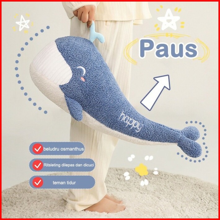 Boneka Lucu Whale Paus Biru Mainan Mewah Bantal Tidur Perempuan Sni