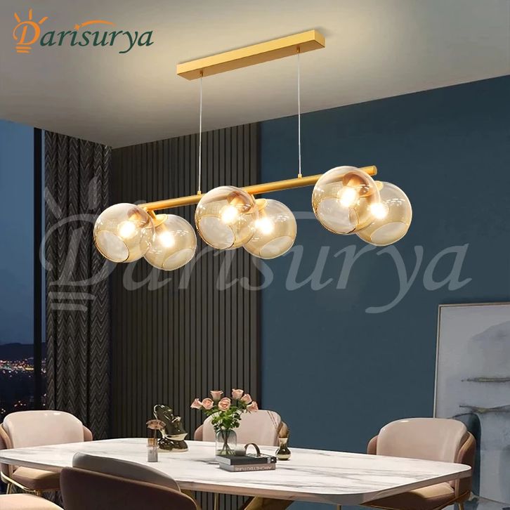 Lampu Gantung Minimalis RU -ANG Meja Makan Mini Bar M -ODern 80cm E -M AS isi 6 Bola Kaca Hias Glass Ball Pendant