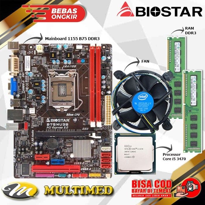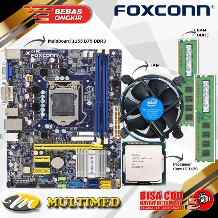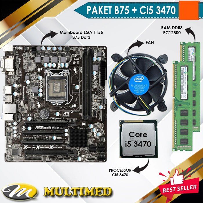 Paket Motherboard LGA 1155 B75 DDR3 + Core I5 + Fan + RAM 8GB USB 3.0