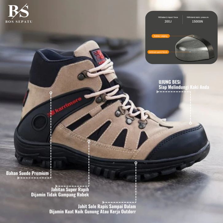 Sepatu Pria Safety Boots Ujung Besi Original Karrimore Ujung Besi Kerja Lapangan Hiking Traveling