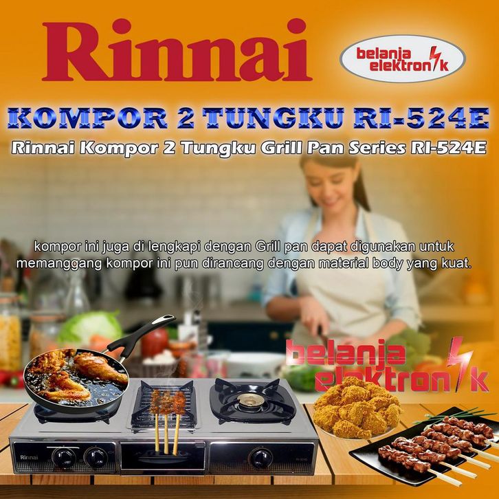 Terlaris RINNAI KOMPOR GAS 2 TUNGKU9rILL PAN SERIES RI-524E Elegan