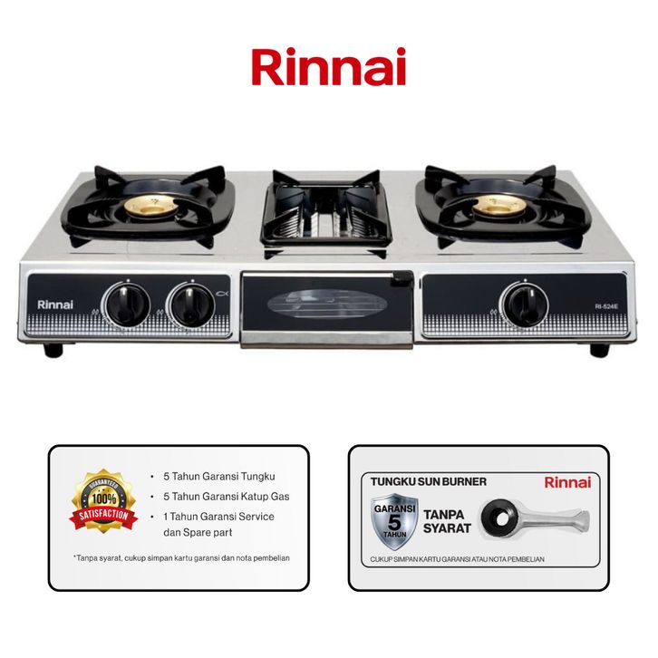 Murah Kompor Gas 2 Tungku Rinnai RI-524E Body Stainless Plus Tungku9rill Panggangan Keren