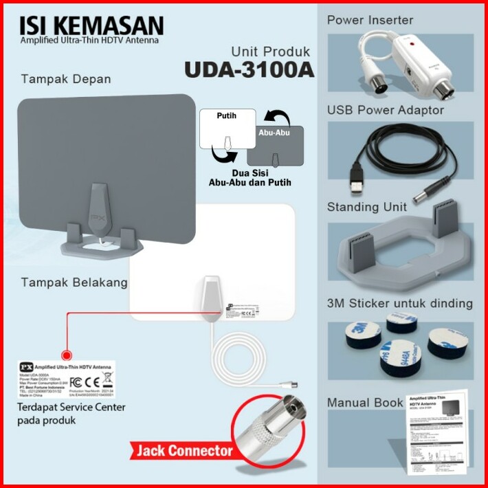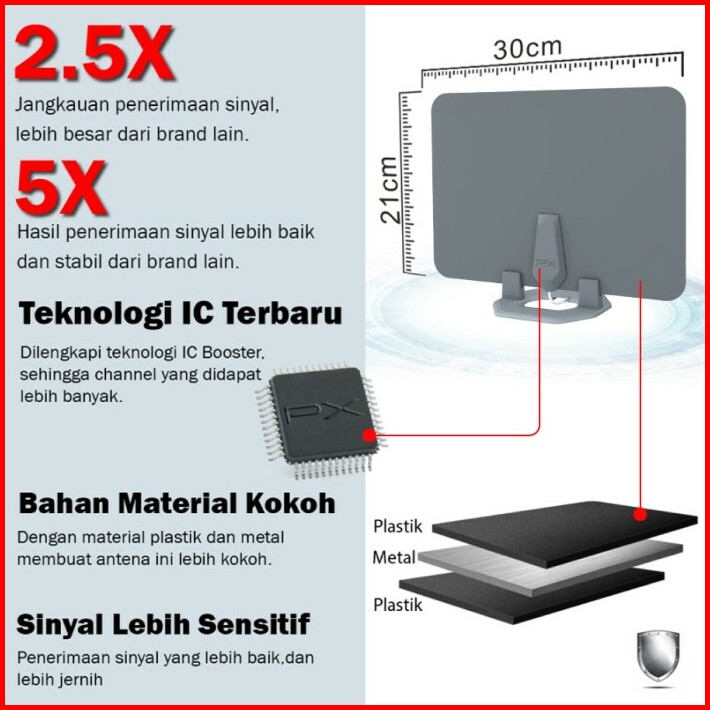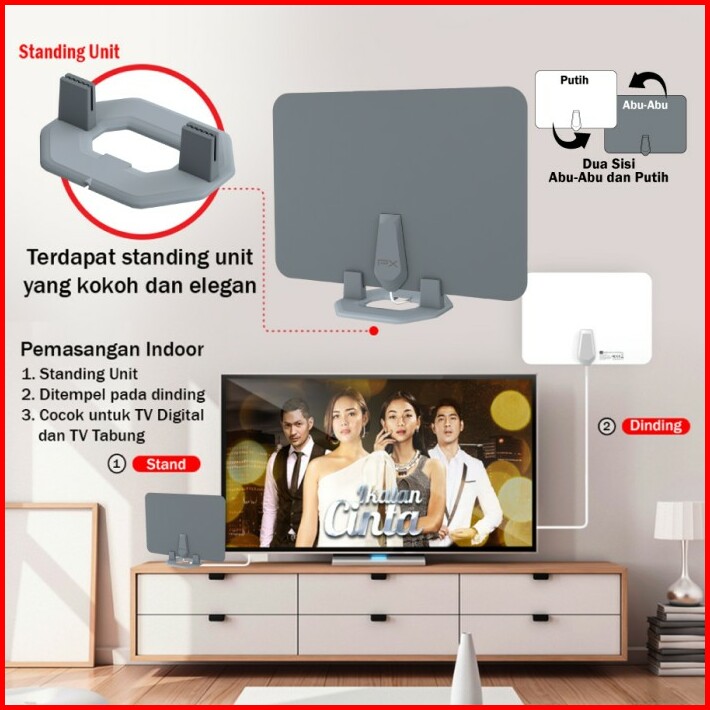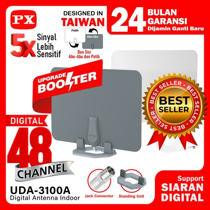 Antena Tv Indoor Dinding Digital Analog Dvbt2 Booster Px Uda-3100a