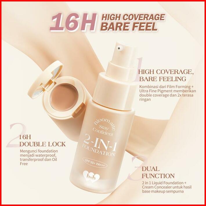 Must Have Bnb Barenbliss Bloomatte Stay Confident 2-in-1 Foundation Foundation Concealer Tahan Lama 16 Jam Waterproof Sw
