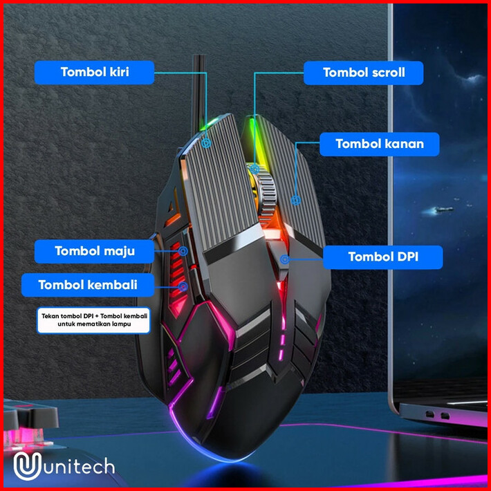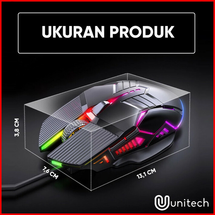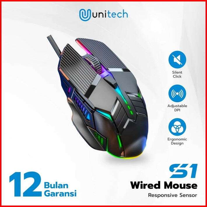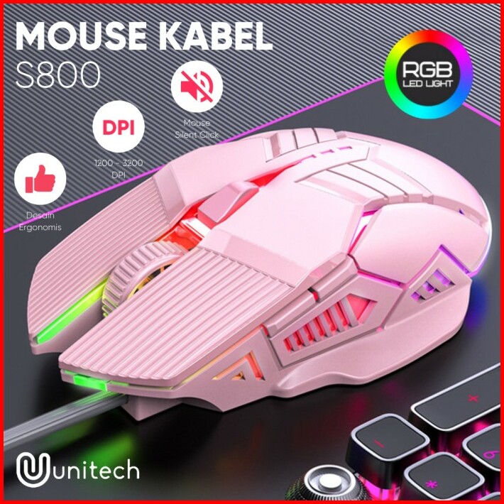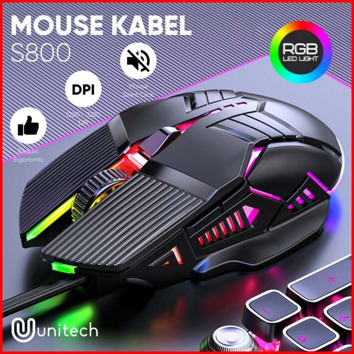 Mouse Gaming Kabel Unitech Rgb Led Silent Click 3200 Dpi S800