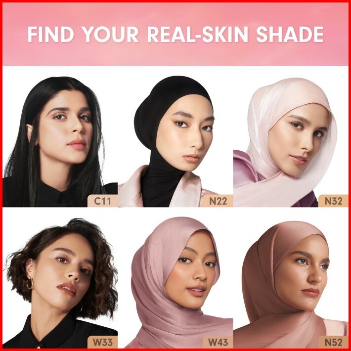 11 FAIR PINK, 22 LIGHT IVORY, 32 TRUE BEIGE, 33 WARM OLIVE, 43 CREME SAND, 52 ALMOND