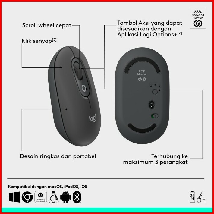 Logitech Pop Icon Mouse Ringkas Dan Portabel Mouse Bluetooth Nirkabel Dengan Tombol Yang Dapat Diprogram Dan Hening Easy
