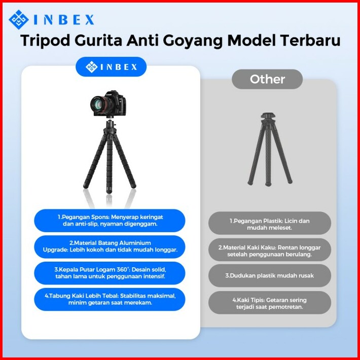 Inbex Ph4 Tripod Gurita Tripod Mini Holder Hp Tripod Anti Goyang Anti Slip Cocok Naik Motor