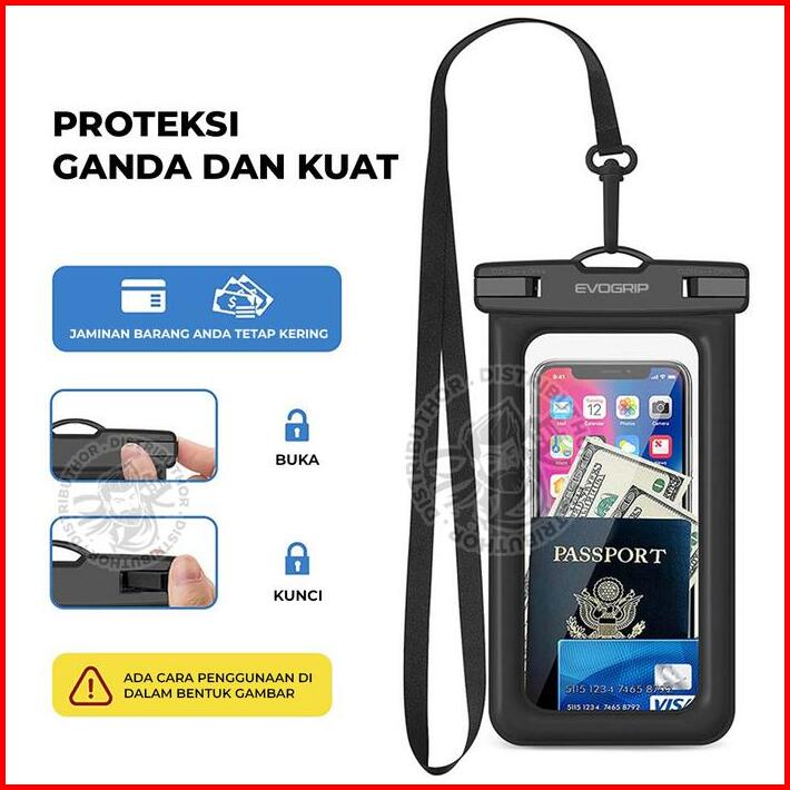 Waterproof Bag Hp Evogrip Wb10 Kantong Pelindung Hp Anti Air Casing Handphone Tas Plastik Holder Motor