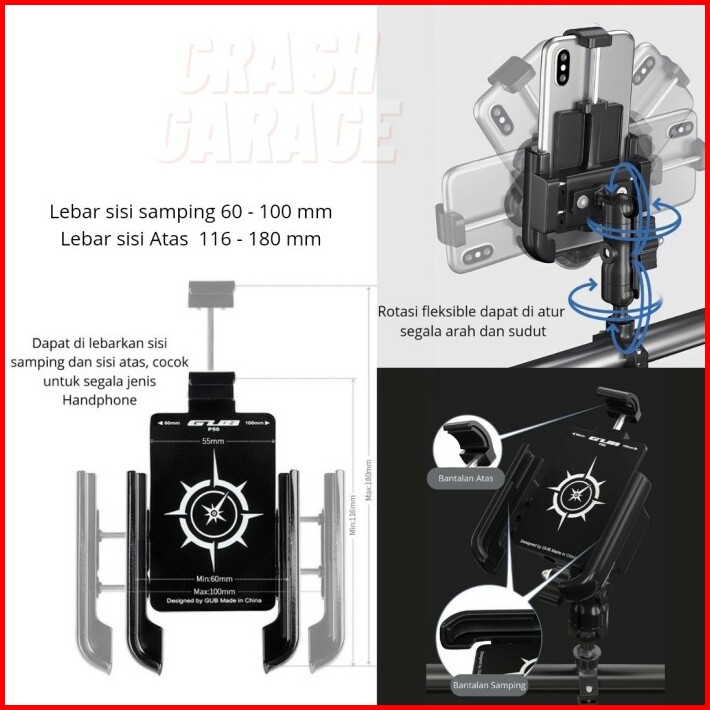 Gub P50 Original Phone Holder Hp Motor Alumunium Alloy Anti Getar Rotasi 360 Flexible Dudukan Ponsel Gps Spion Tempat Ha