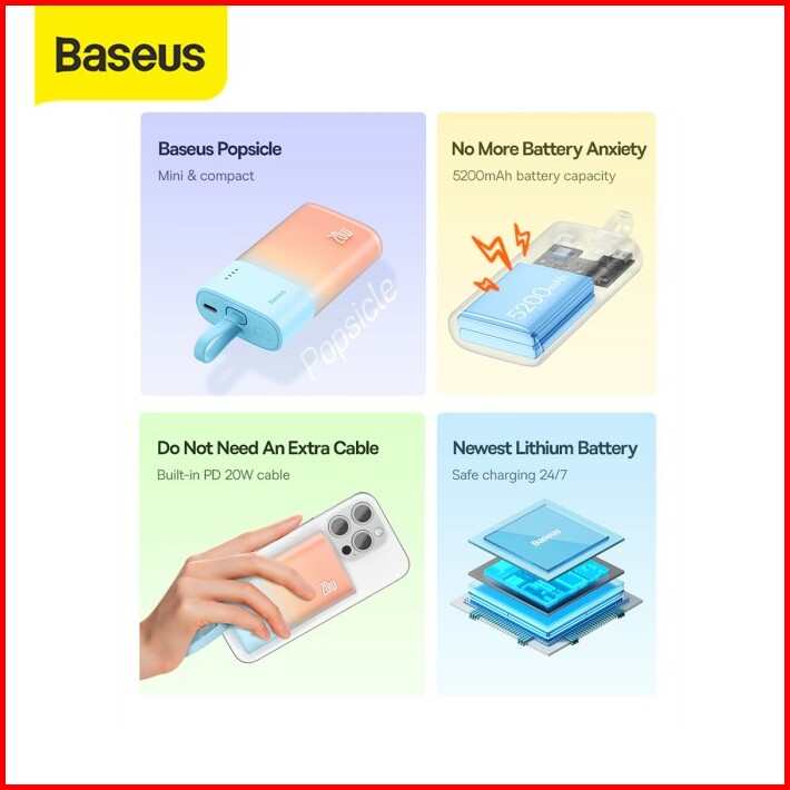 Baseus Popsicle Fast Charging Power Bank Pd 20w Iphone Type-c 5200mah
