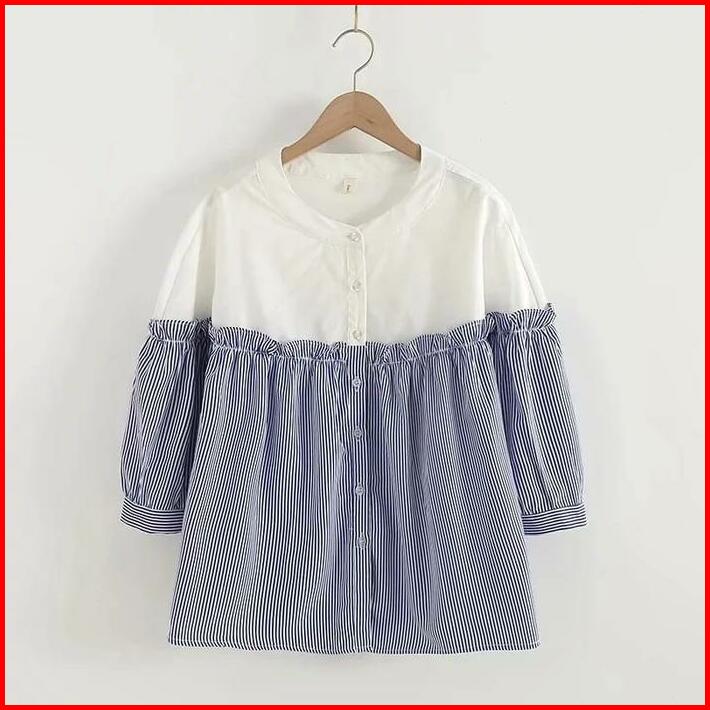 Kia Salur Kemeja Wanita Atasan Jumbo Blouse Big Size Pakaian Wanita Over Size S M L Xl Xxl Xxxl 5l Baju Panjang