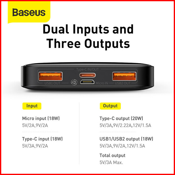 Power Bank Baseus 20w Fast Charging Quick Charge 3.0 Type C Pd