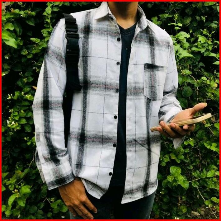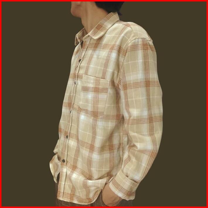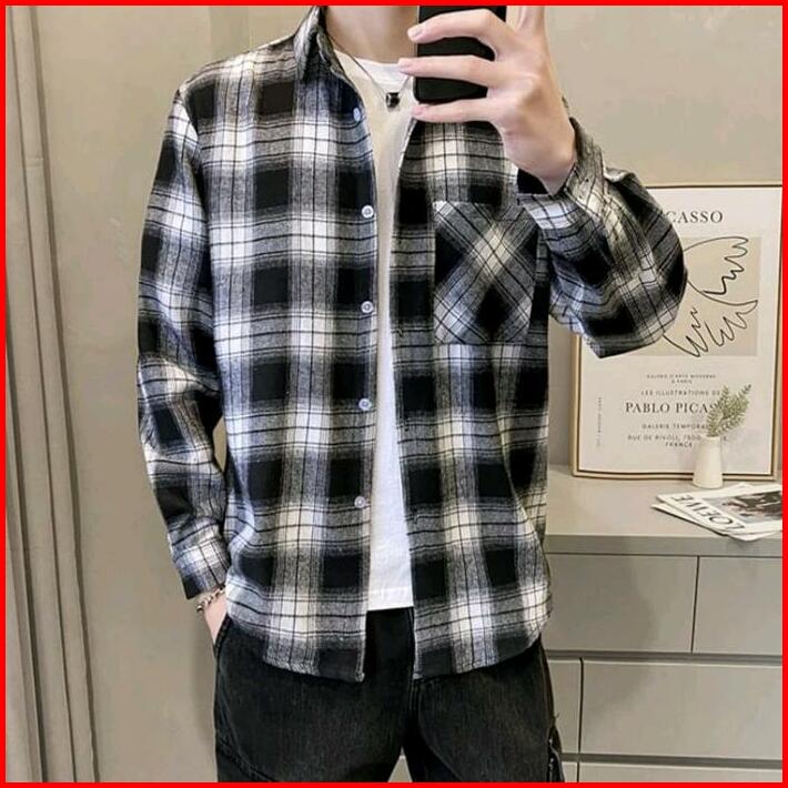 Kemeja Flanel Pria Lengan Panjang Flanel V-neck Baju Lembut Kain Motif