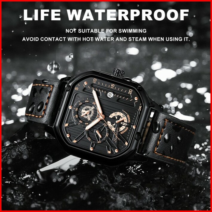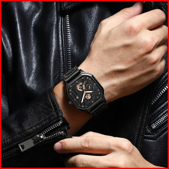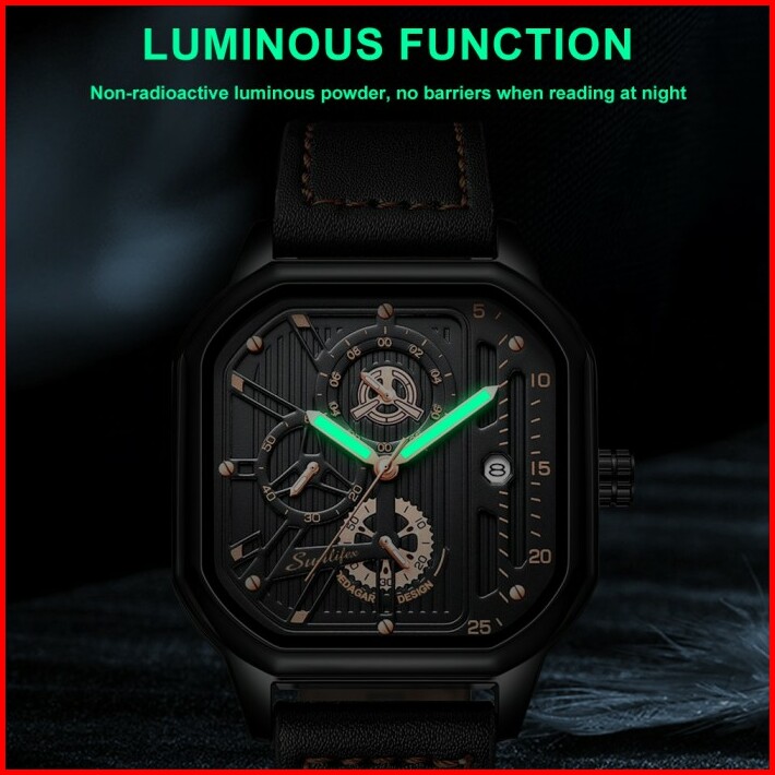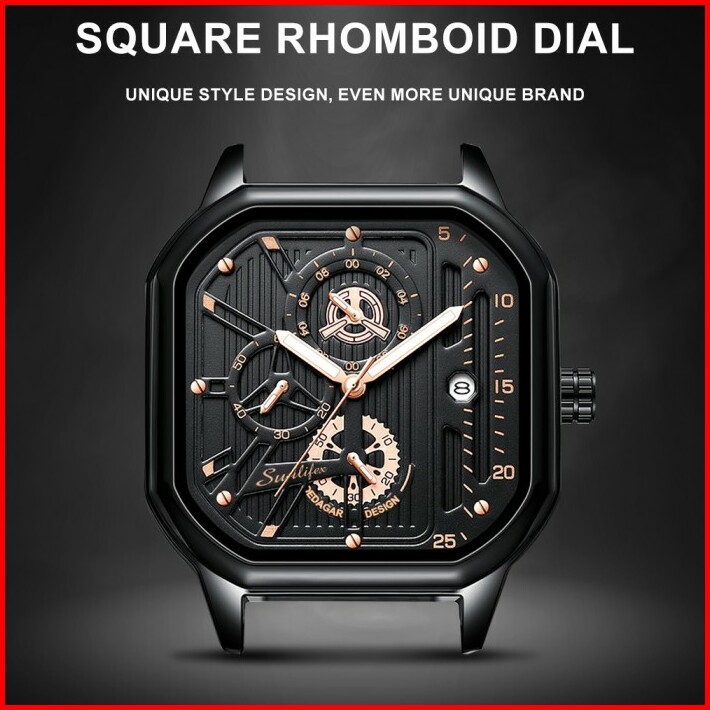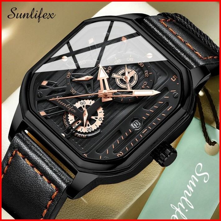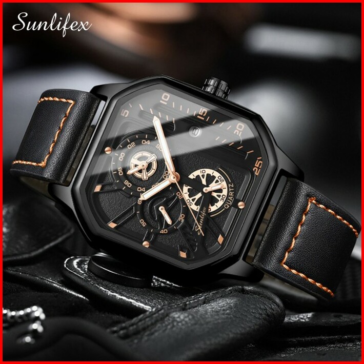 Sunlifex Jam Tangan Pria Square Rhomboid Dial Tali Kulit Kalender Jam