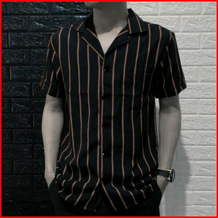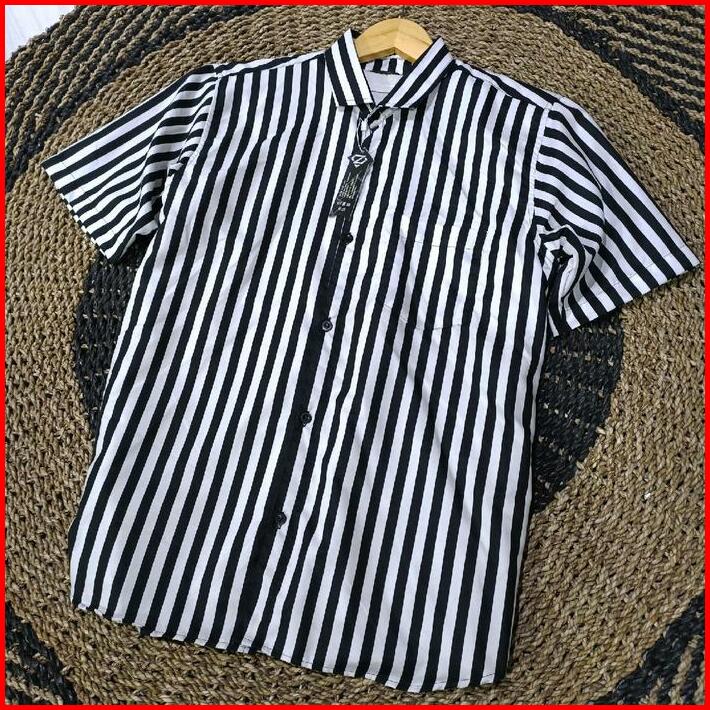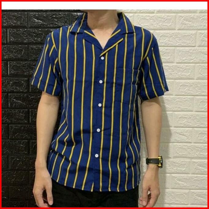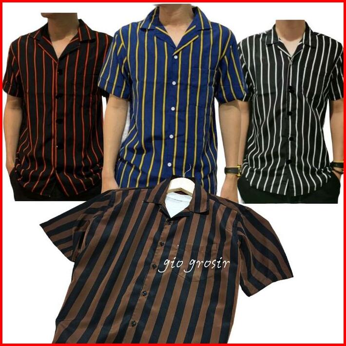 Kemeja Salur Pria Lengan Pendek Katun Setrip