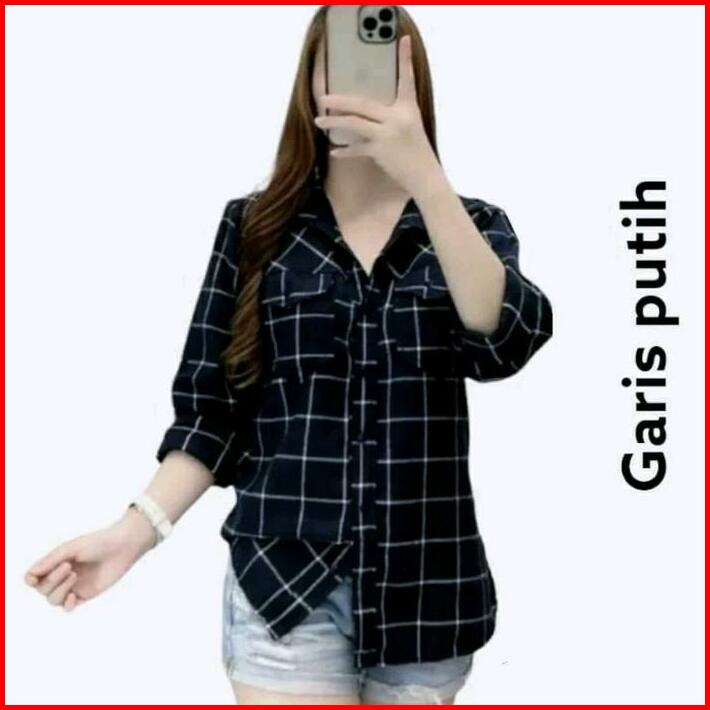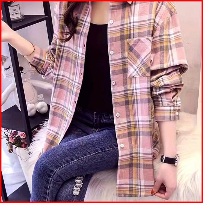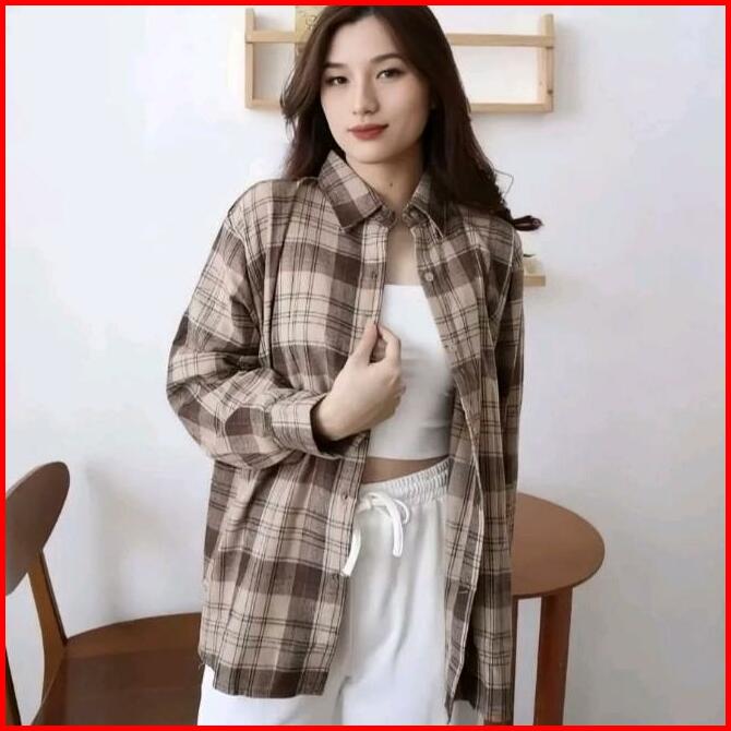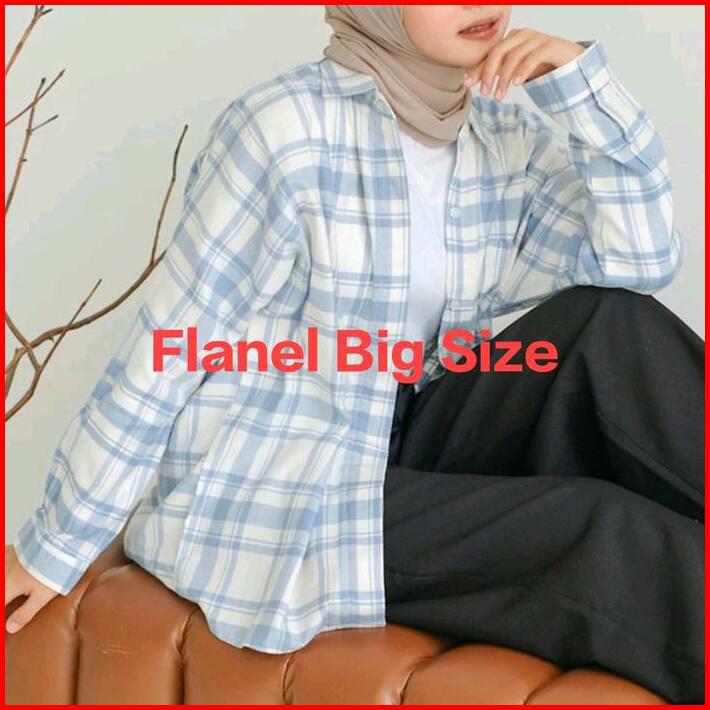 Big Size Kemeja Flanel Kotak Kotak Wanita Best Seller Atasan Panjang Flanel