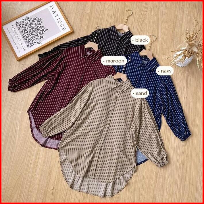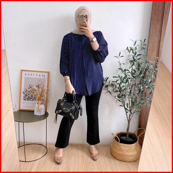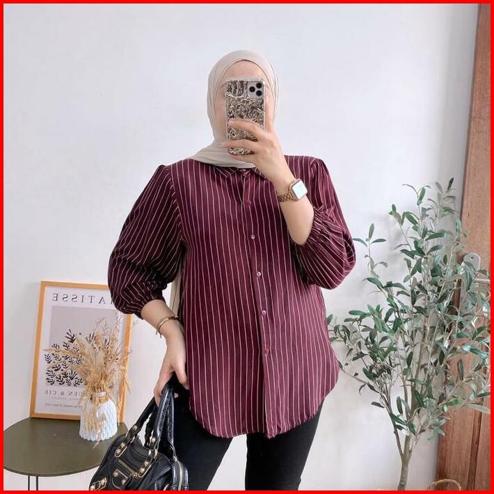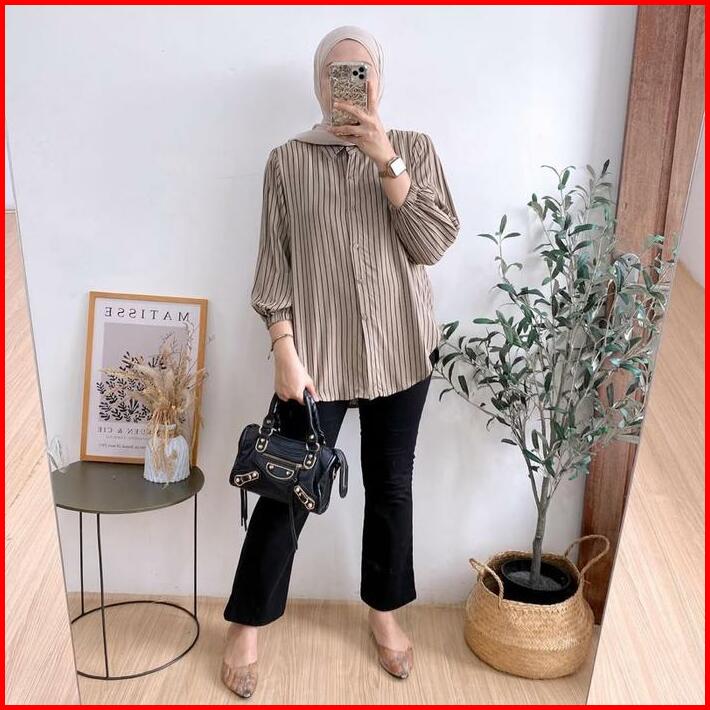Atasan Wanita Salur Bahan Rayon Premium Blouse Wanita Terbaru Kemeja Rayon Premium Kemeja Rayon Oversized Kemeja Katun R