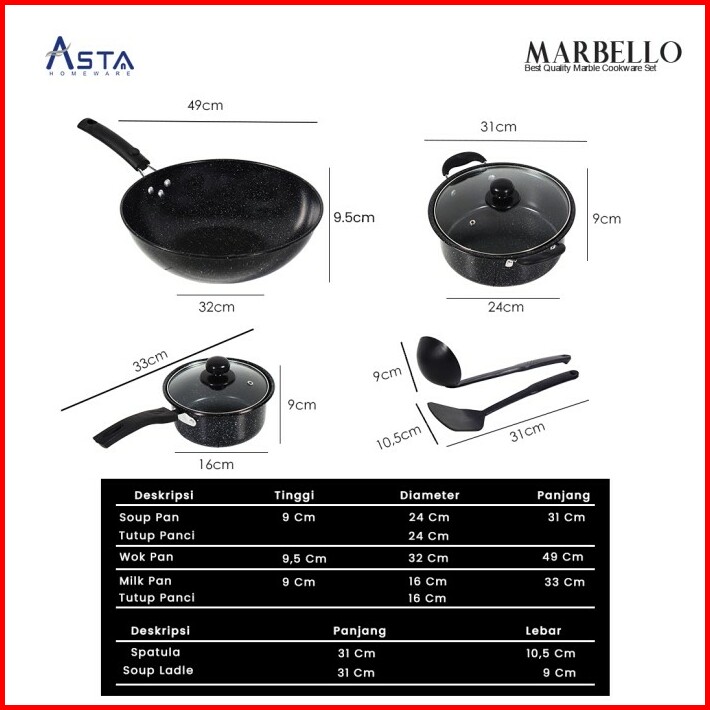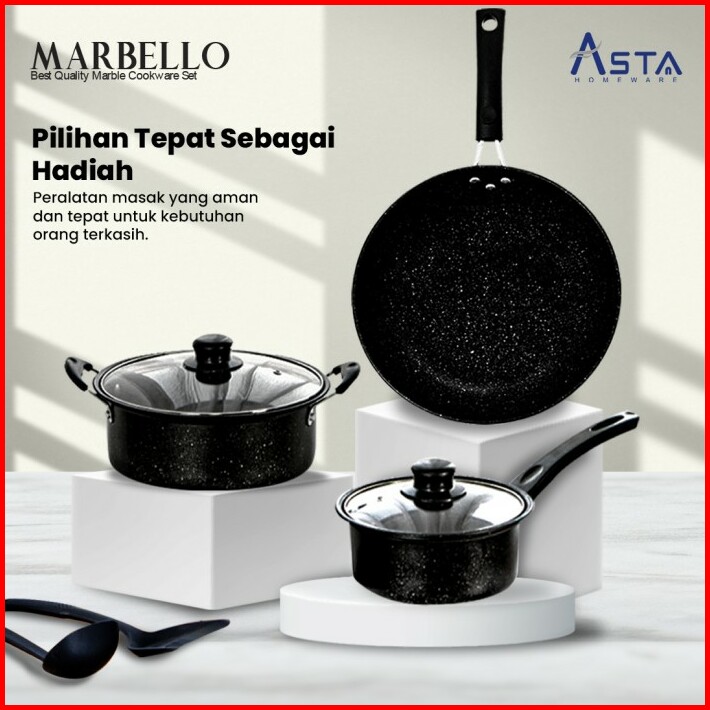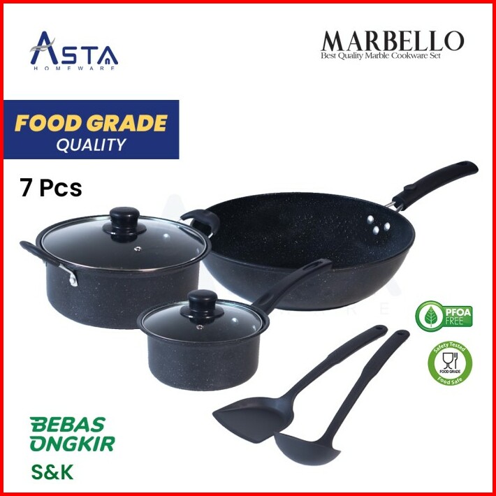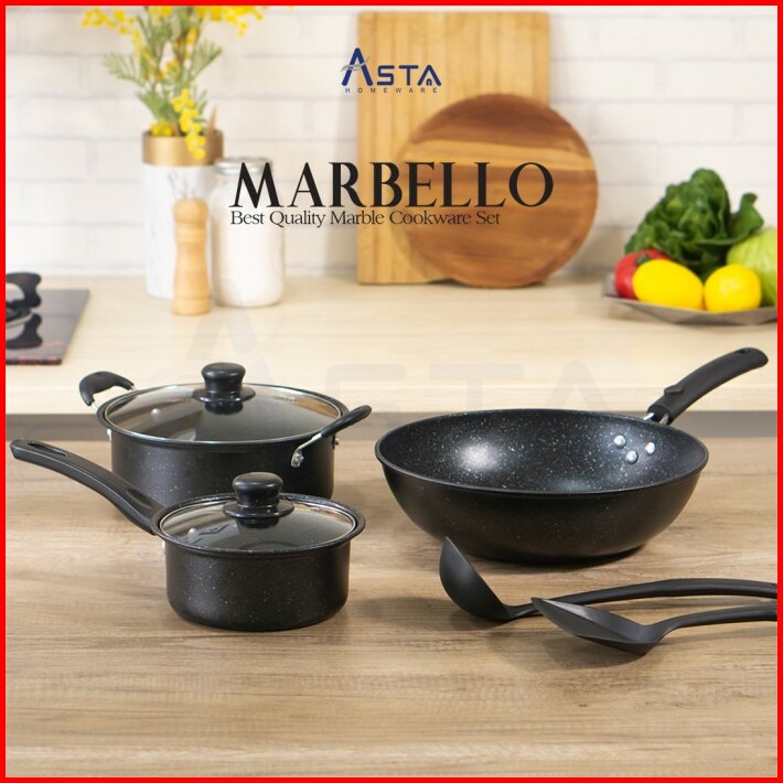 Marbello Cookware Set Panci Marble Anti Lengket 7pcs Pfoa Free