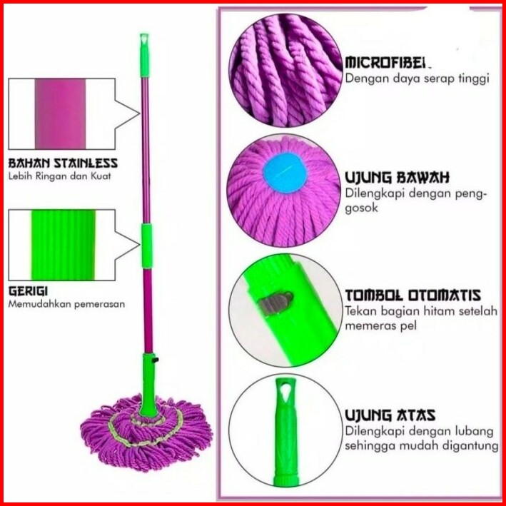 Alat Pel Lantai Twist Mop Set Alat Pel Otomatis Pel Putar Peras