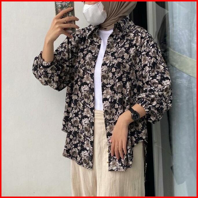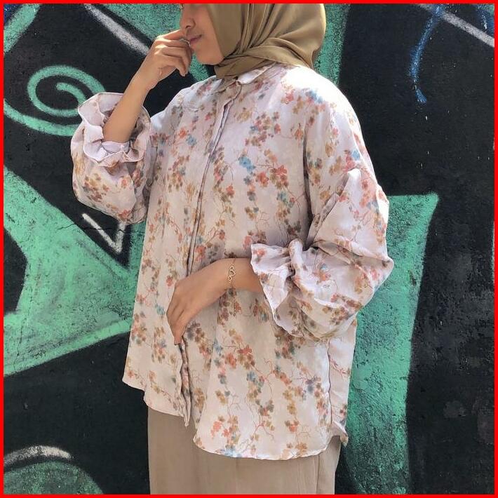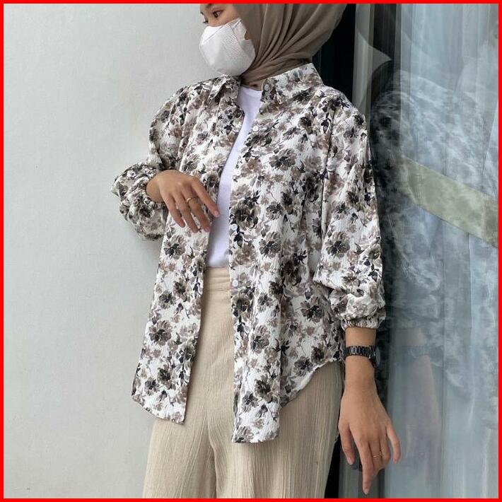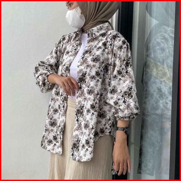 Blouse Kemeja Panjang Motif Bunga