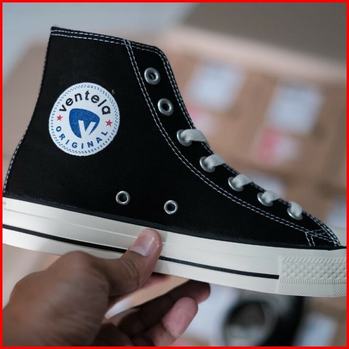 Sepatu Ventela 70s Etnic High Hitam Putih 100 Original