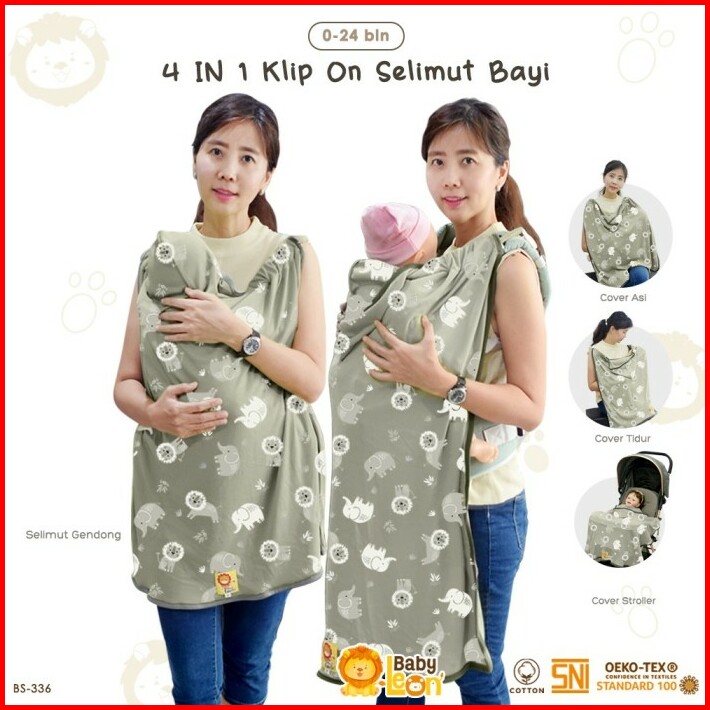 4in1 Baby Leon Selimut Hoodie Klip Baby Bs-336 Penutup Stroller Bayi