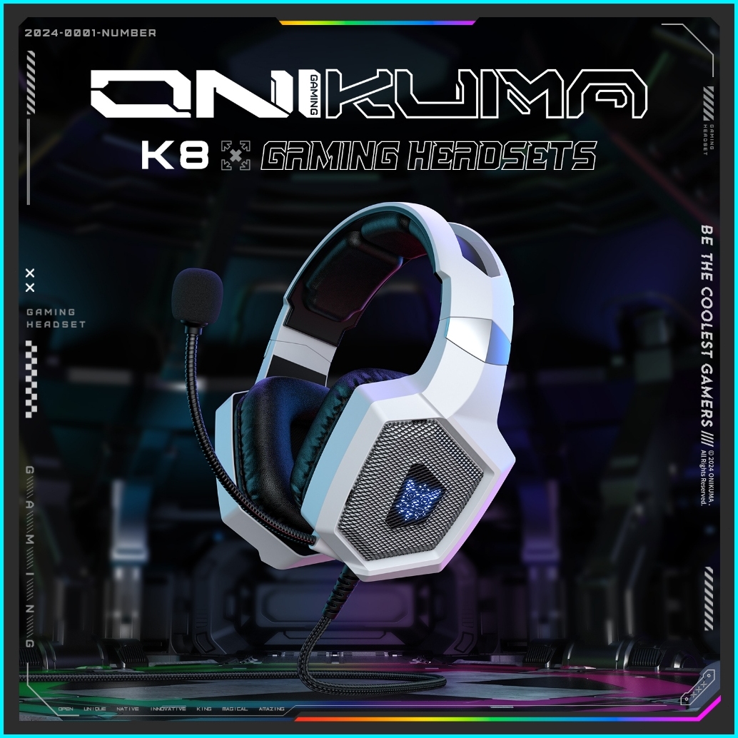 Onikuma K8 Putih Game Earphones Pc Noise Reduction Earphones Rgb Wired Earphones With Microphone Suitable For Pc Laptop