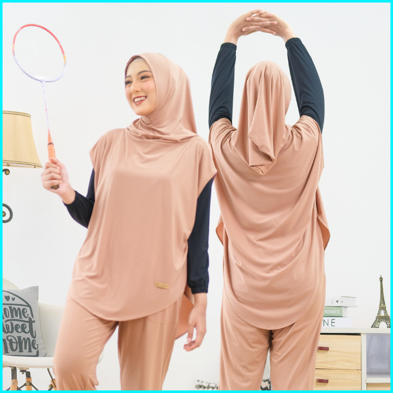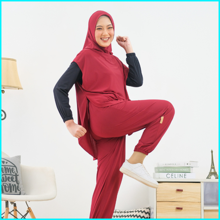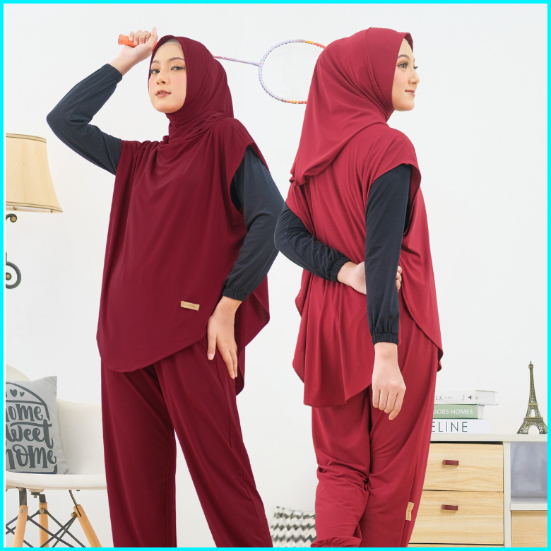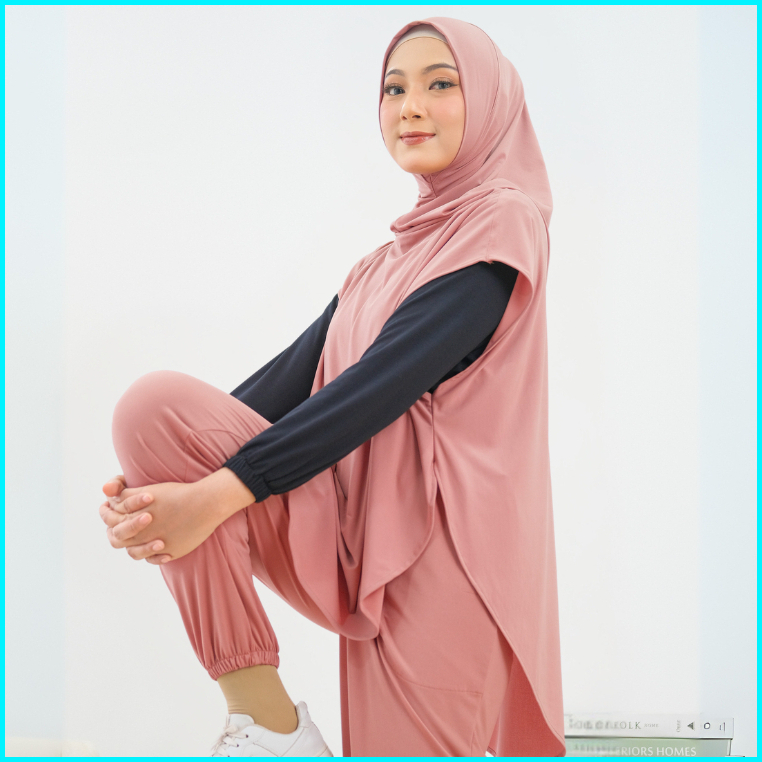 Helairindu - Setelan Hijab Olahraga Wanita Outer Hijab Dan Celana Bahan Royal Jersey