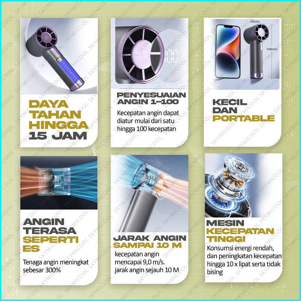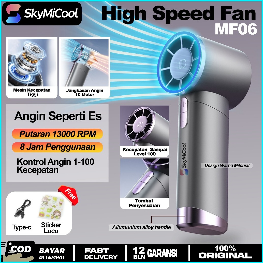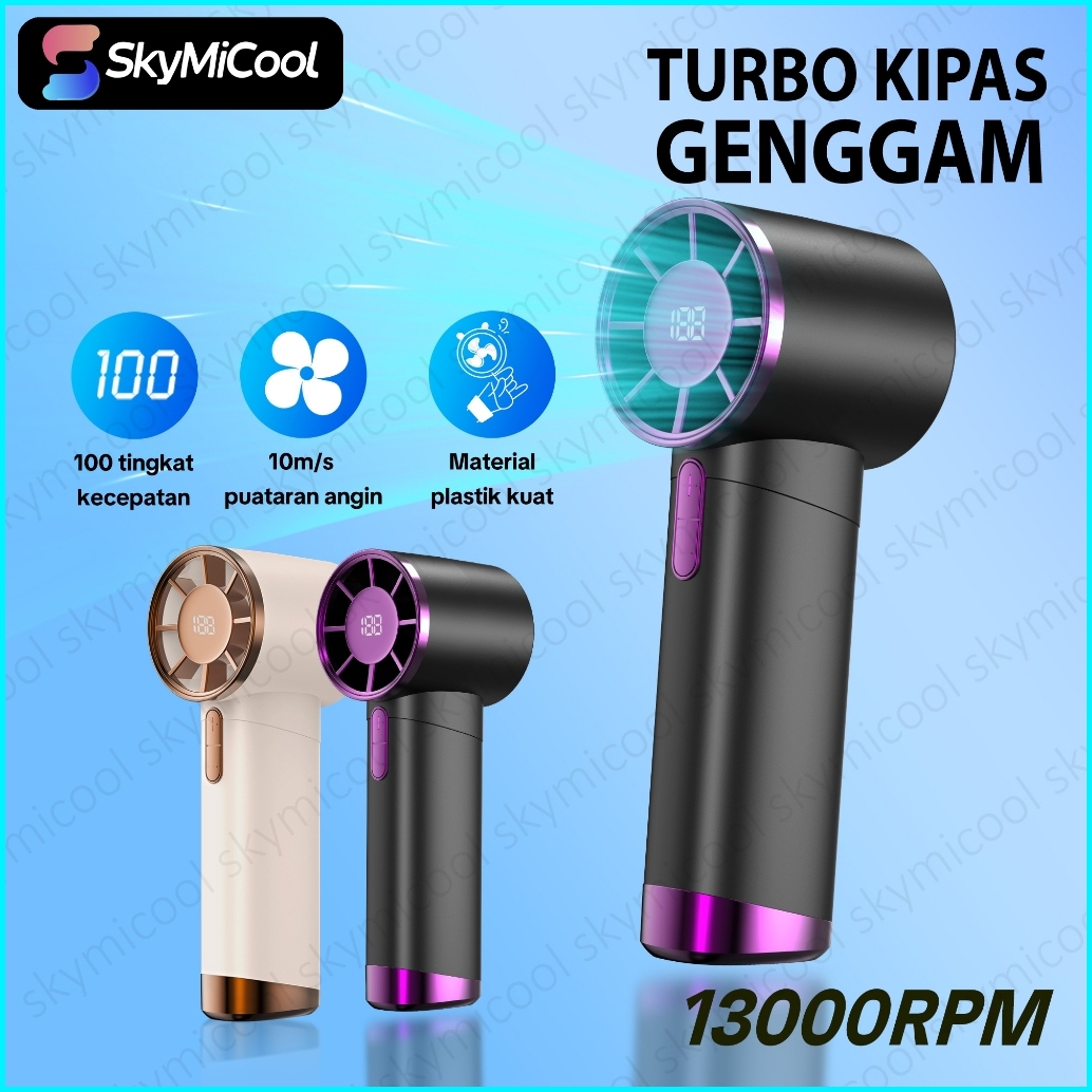 Skymicool Kipas Angin Portable Turbo High Speed Lcd Digital Mini Fan Tangan Genggam Usb 100gear Mf06