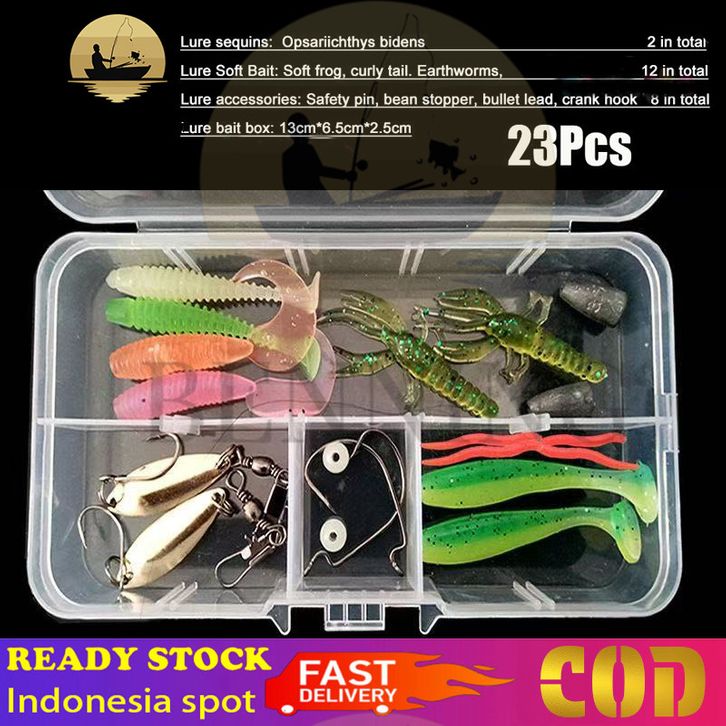 PROMO 23Pcs Soft Lure 1set Soft Bait Fishing Lure Umpan Pancing Gabus Umpan Lembut Soft Lure Casting Umpan Soft Bait Kom