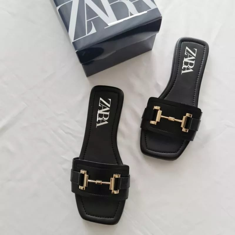 Sandal Flat Wanita Zara Teplek Anti-Slip Elegan