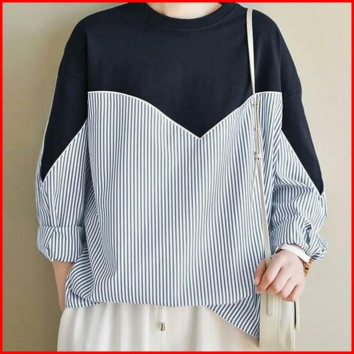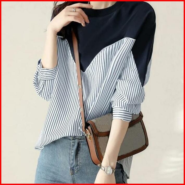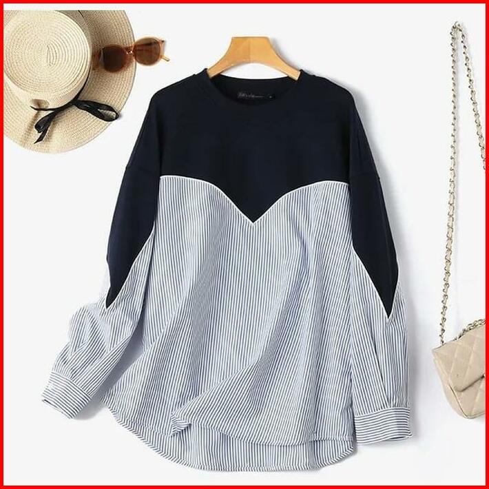 Inara Blouse Skuba Mix Salur Atasan Wanita Korean Style Atasan Jumbo Oversize Size S M L Xl Xxl Xxxl 5l