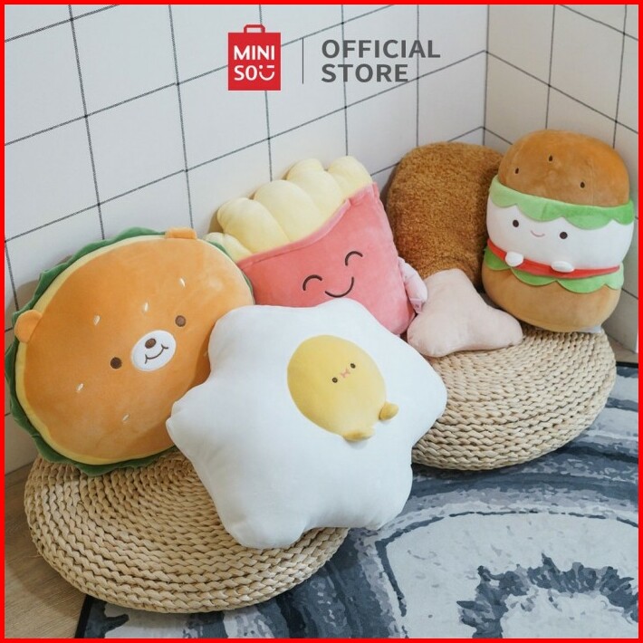 Miniso Boneka Bantal Burger Lucu Mainan Mewah Lembut Bantal Tidur