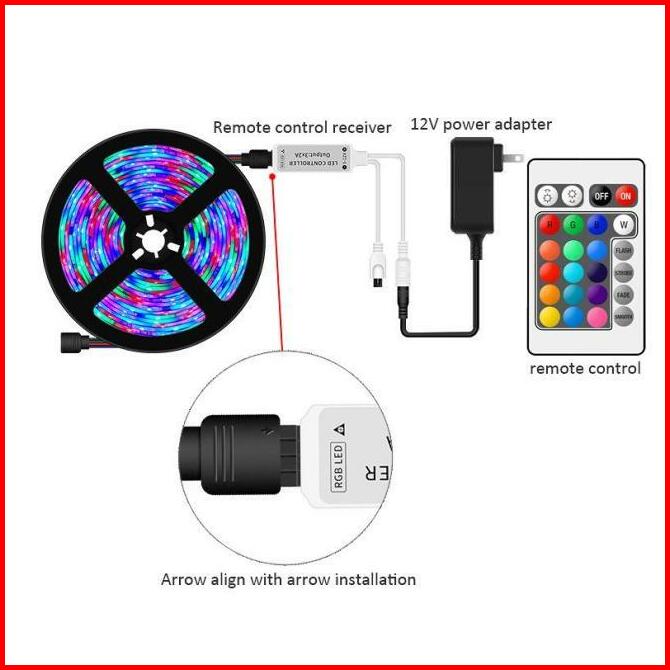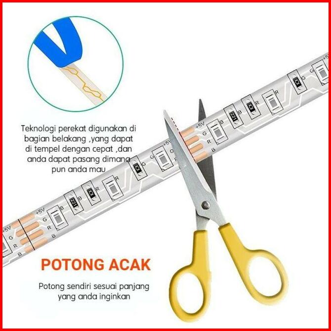 Pplus Lampu Led Strip Rgb 5m 12v 2835 Waterproof Komplit Set Adaptor Remote Waterproof Lampu Kamar Aesthetic Variomodifi